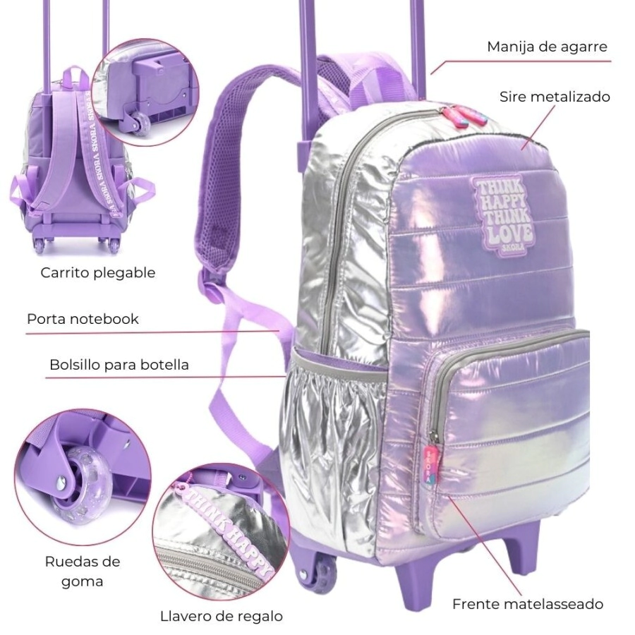45x30; Capacidad 27L; Escolar; Primavera/Verano; compartimento especial para tu notebook; carro